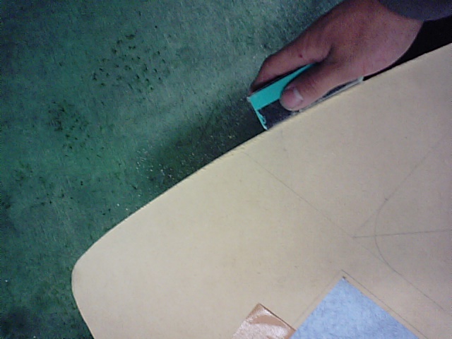 面出し作業。少し大きめに切って、この作業で俺は形の調整をした。100番以下のサンドペーパーでやってあげると面白いように削れる削れる^^♪仕上げは400番くらいで。