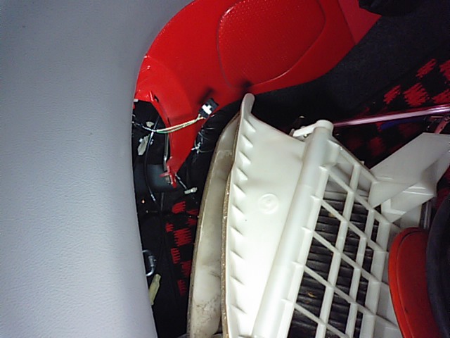 グローブBOXを外すとすぐに見える白い塊がブロワユニット。