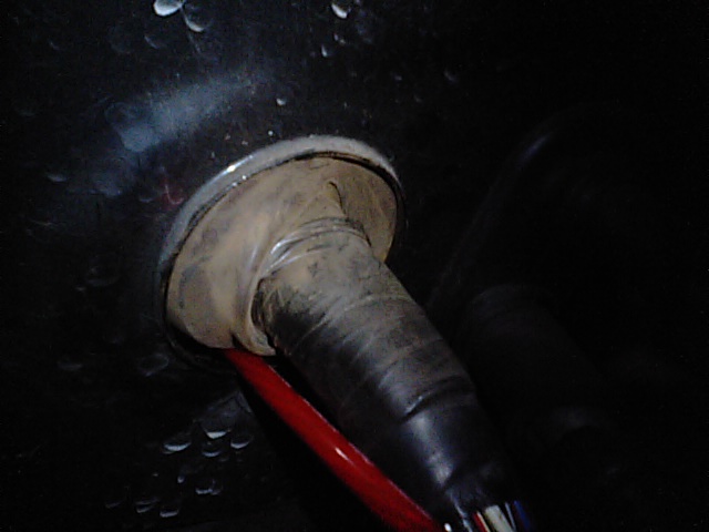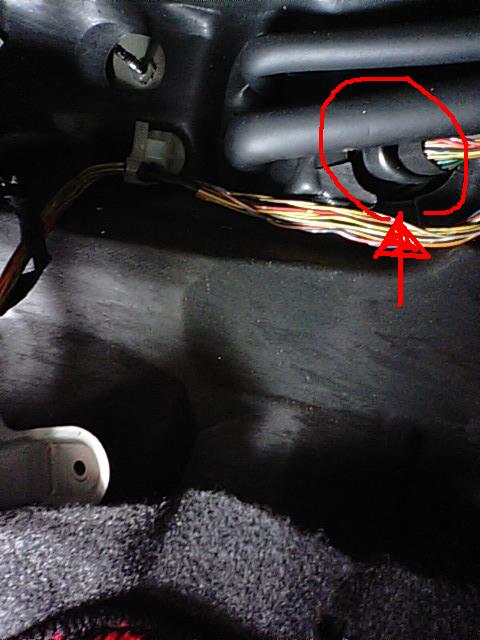 ・・・が、zzセリカは穴の直後にブロワユニットの壁が存在するため、ECU配線も室内に入ったとたん90°折れ曲がっており、E/Gルームから電源線を押し込んでいってもなかなかうまくいかない。
